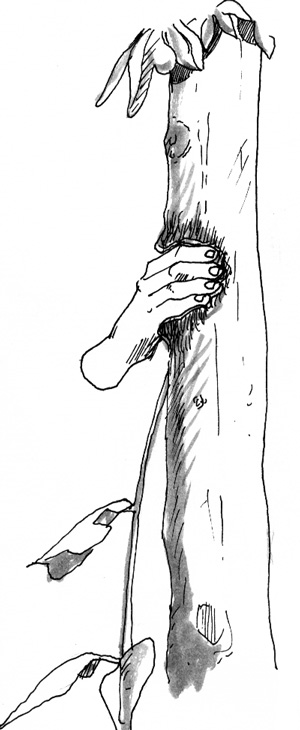 Main d’acier fixée dans un arbre.